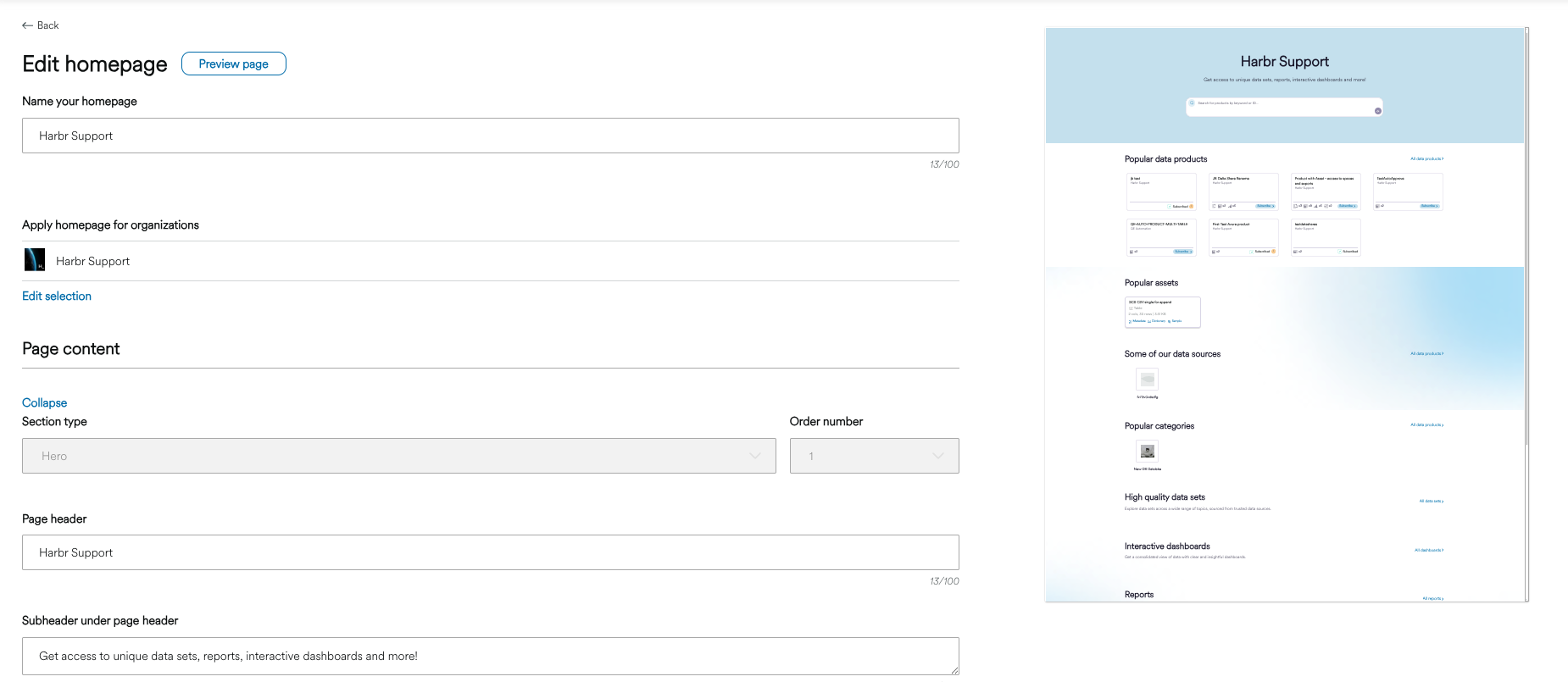 The Homepage is the landing page that users see when they log in to your platform. It can be configured by users with the Ecosystem Administrator role and is designed to highlight featured content, showcase key data products and assets, and provide quick access to popular or new items on the Exchange.